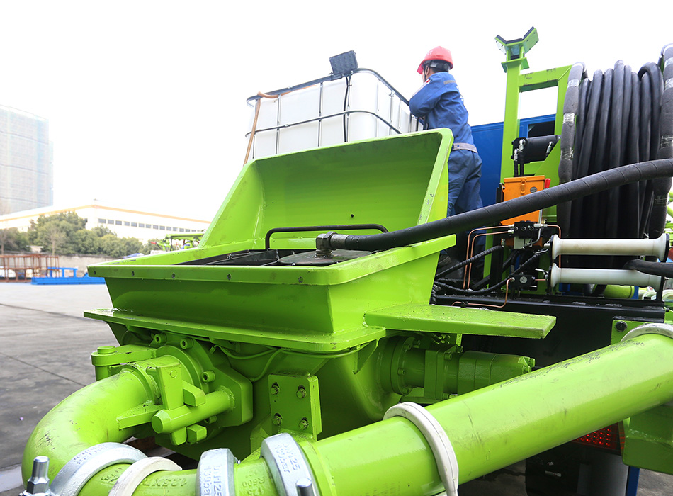 LHP40M輪式濕噴機(jī)械手采用云內(nèi)發(fā)動(dòng)機(jī),整機(jī)結(jié)構(gòu)優(yōu)化升級(jí),故障率低,泵送系統(tǒng)采用全液壓負(fù)載敏 感系統(tǒng),輸送量穩(wěn)定,維護(hù)成本低;設(shè)備具有噴射方量大、不易堵管、回彈低、粉塵少等優(yōu)勢(shì)。噴射系 統(tǒng)采用無(wú)線遙控操作,易于控制機(jī)械臂的動(dòng)作,具有快速、效率高、節(jié)能等特點(diǎn)。